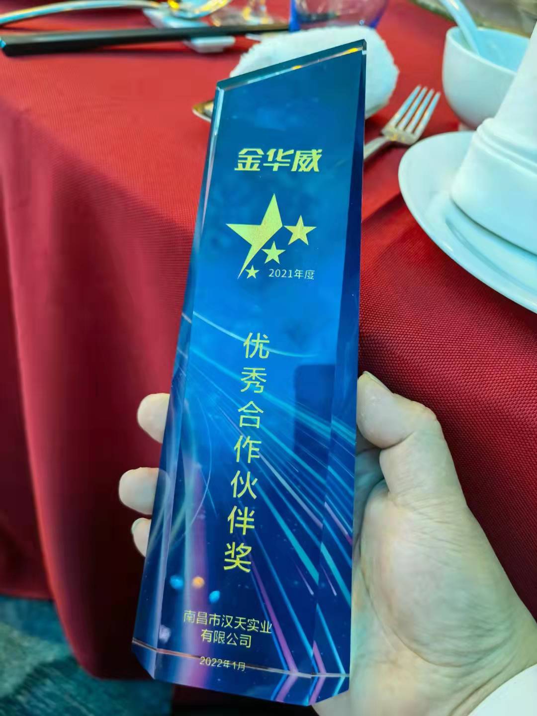我司作為合作伙伴之一,受邀參加晚宴,并榮獲 “2021年度優(yōu)秀合作伙伴獎(jiǎng)”,這是對(duì)我們南昌漢天綜合實(shí)力和以往合作的充分肯定。