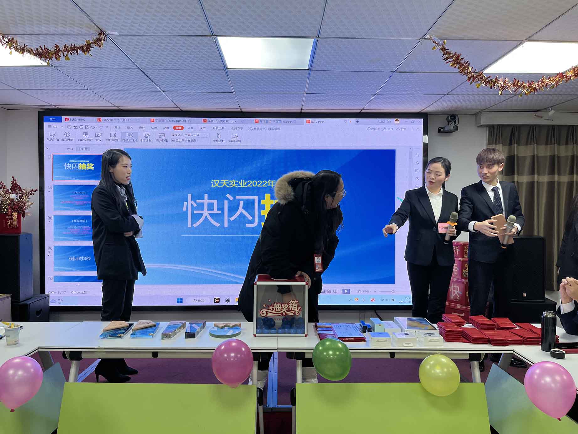 伴隨著歡聲笑語,漢天實業(yè)的員工們相聚一堂,在主持人的熱情祝福中,拉開了年終總結(jié)會的序幕。