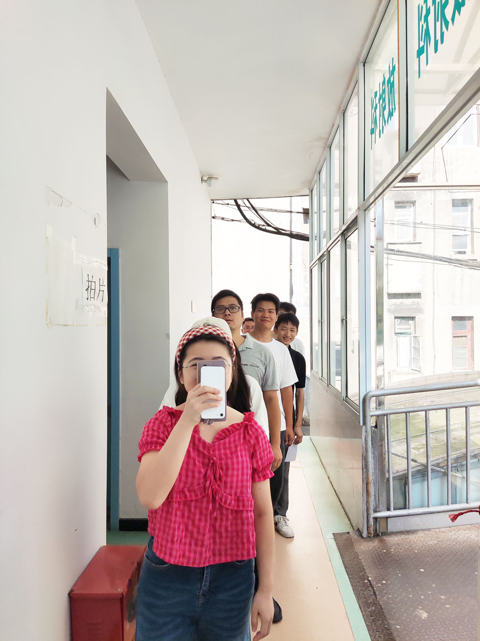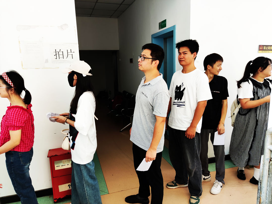 體檢現(xiàn)場(chǎng)大家有序排隊(duì),領(lǐng)取體檢表格。