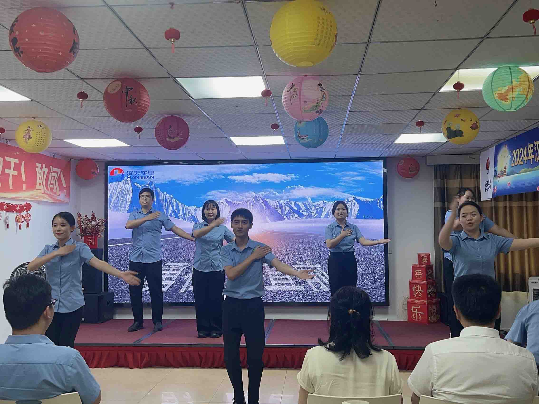 活動(dòng)由漢天管理層們的舞蹈表演作為開場(chǎng),瞬間點(diǎn)燃了現(xiàn)場(chǎng)的熱情與期待。隨著動(dòng)感的音樂響起,公司管理層們以整齊劃一的步伐和充滿活力的舞姿,演繹了《勇往直前》這首勵(lì)志歌曲。他們身著統(tǒng)一的服裝,面帶微笑,每一個(gè)動(dòng)作都充滿了力量與激情,展現(xiàn)了我們漢天人積極向上,勇于挑戰(zhàn)的精神風(fēng)貌。